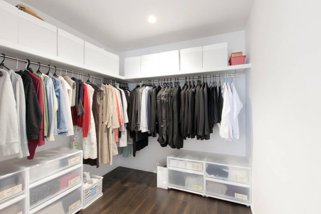 デザインクロスで落ち着きのある寝室と広いクローゼット
